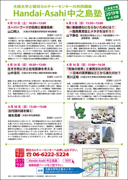 | 主催 | 大阪大学共創機構社学共創本部21世紀懐徳堂、朝日カルチャーセンター |