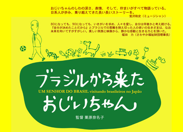 ドキュメンタリー映画「ブラジルから来たおじいちゃん」(2008、59分)の上映会ののち、監督の栗原奈名子さんを囲んで映画のあれこれや映画に託した思い、また若い人々へのメッセージ等伺います。入場無料、予約不要です。どなたでもお越し下さい。
