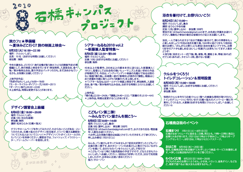 「石橋キャンパスプロジェクト」2010年8月のプログラム