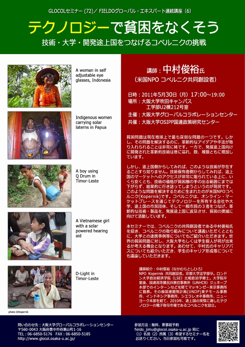 大阪大学グローバルコラボレーションセンター http://www.glocol.osaka-u.ac.jp/research/110530.html |