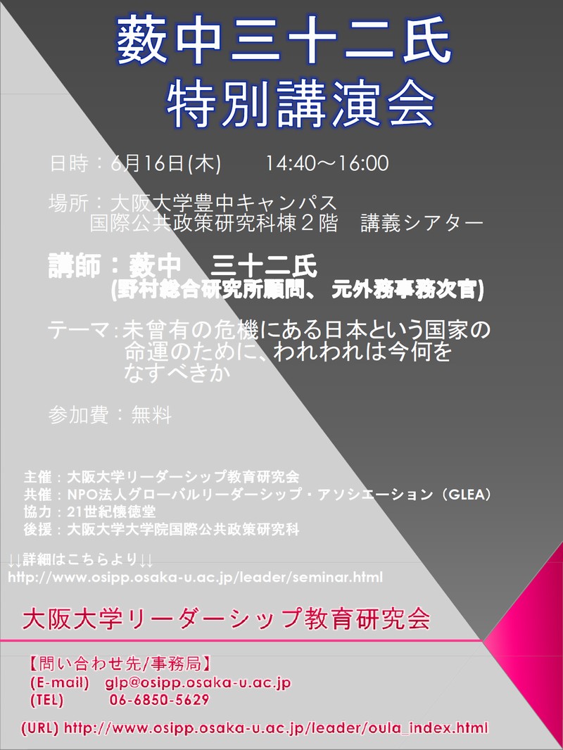 問い合わせ先 http://www.osipp.osaka-u.ac.jp/leader/seminar.html