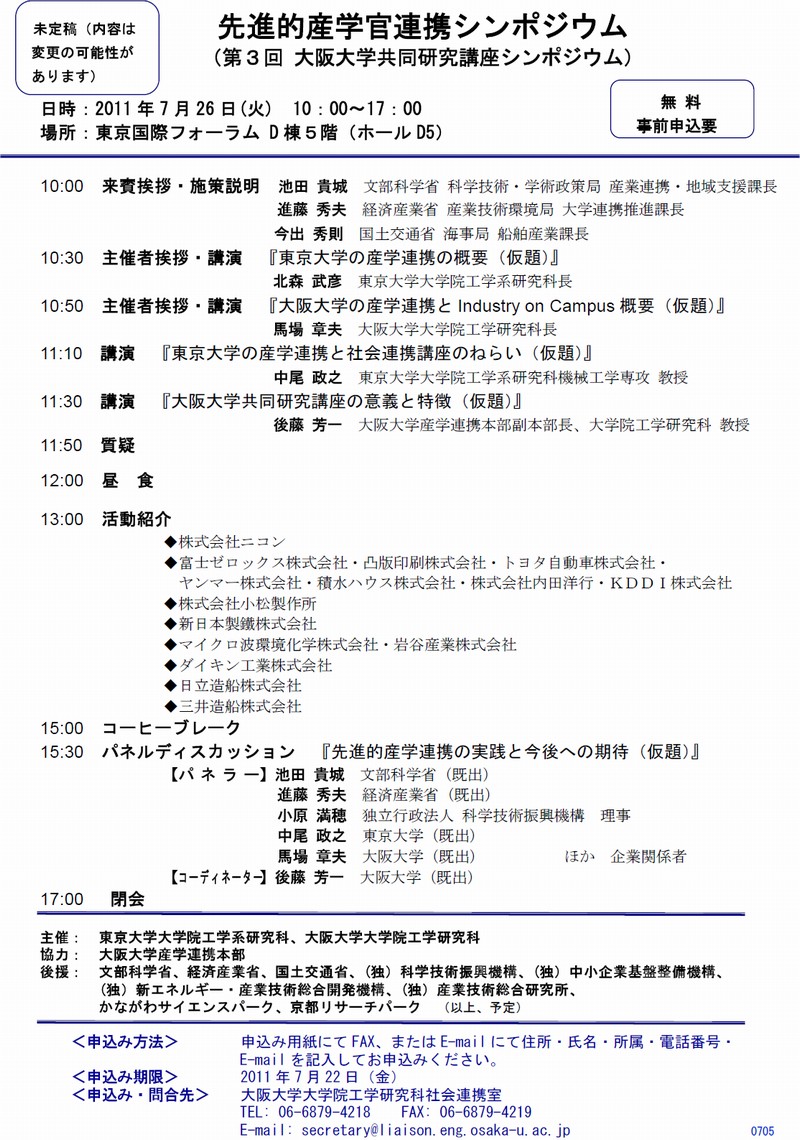 工学研究科社会連携室 http://www.eng.osaka-u.ac.jp/ja/cgi/event.cgi#1309509622 |