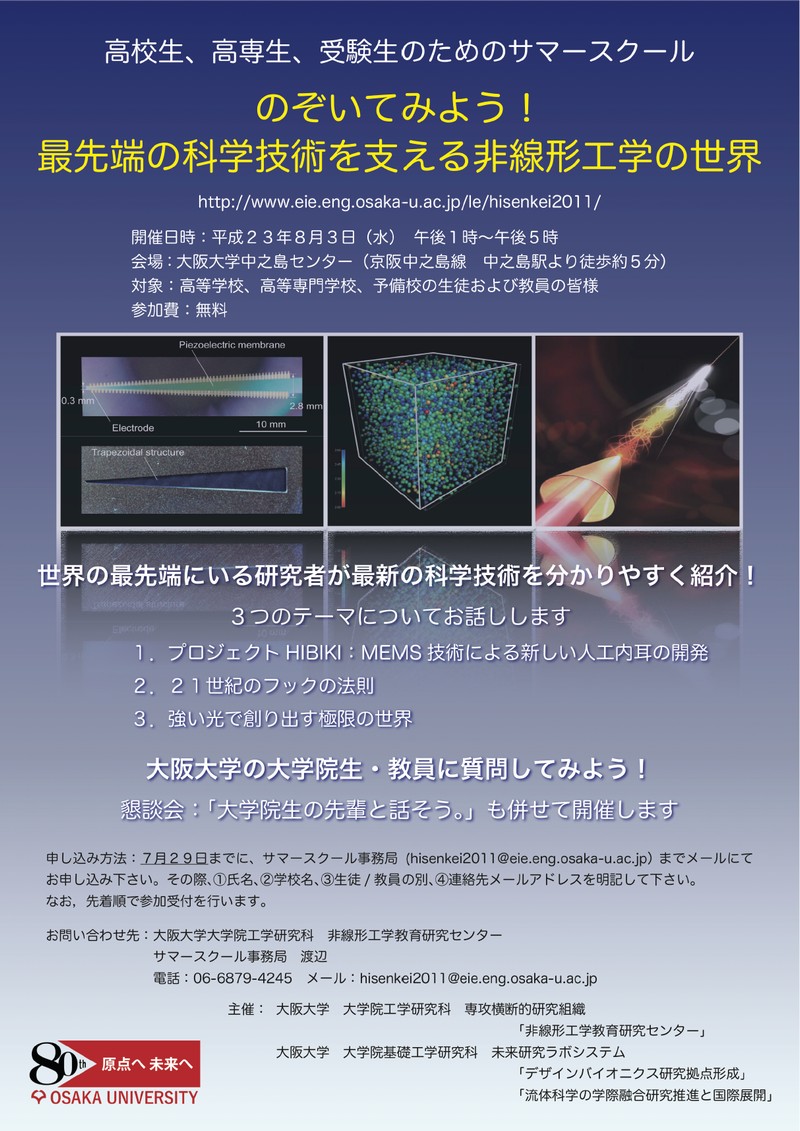 非線形工学教育研究センター サマースクール事務局 渡辺 http://www.eie.eng.osaka-u.ac.jp/le/hisenkei2011/ |