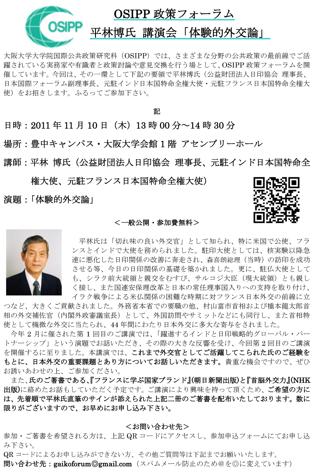 平林博氏講演会実行委員会 http://www.osipp.osaka-u.ac.jp/p_forum/index.html |