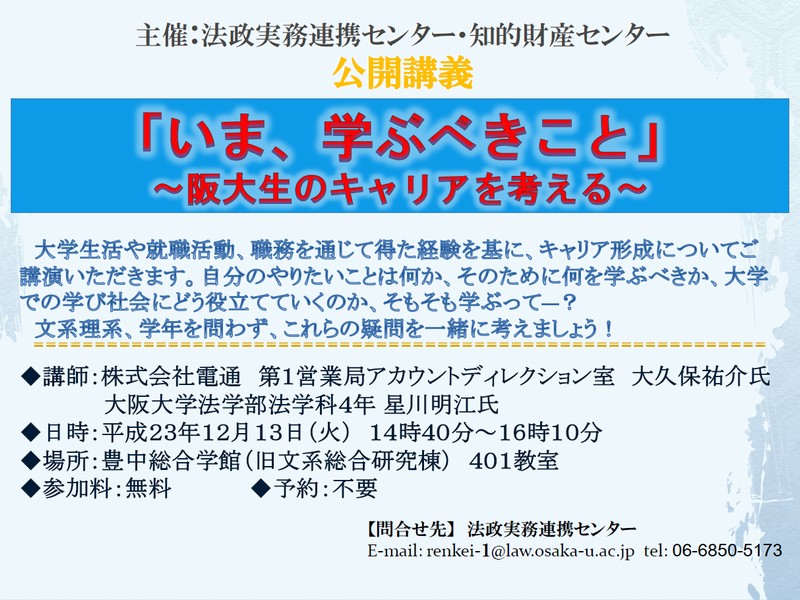 法政実務連携センター http://www.lawschool.osaka-u.ac.jp/update/2011/koukaikougi_111213.pdf |