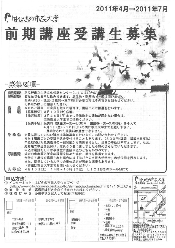 はびきの市民大学 http://www.city.habikino.osaka.jp/lic/shimindaigaku/index.html |