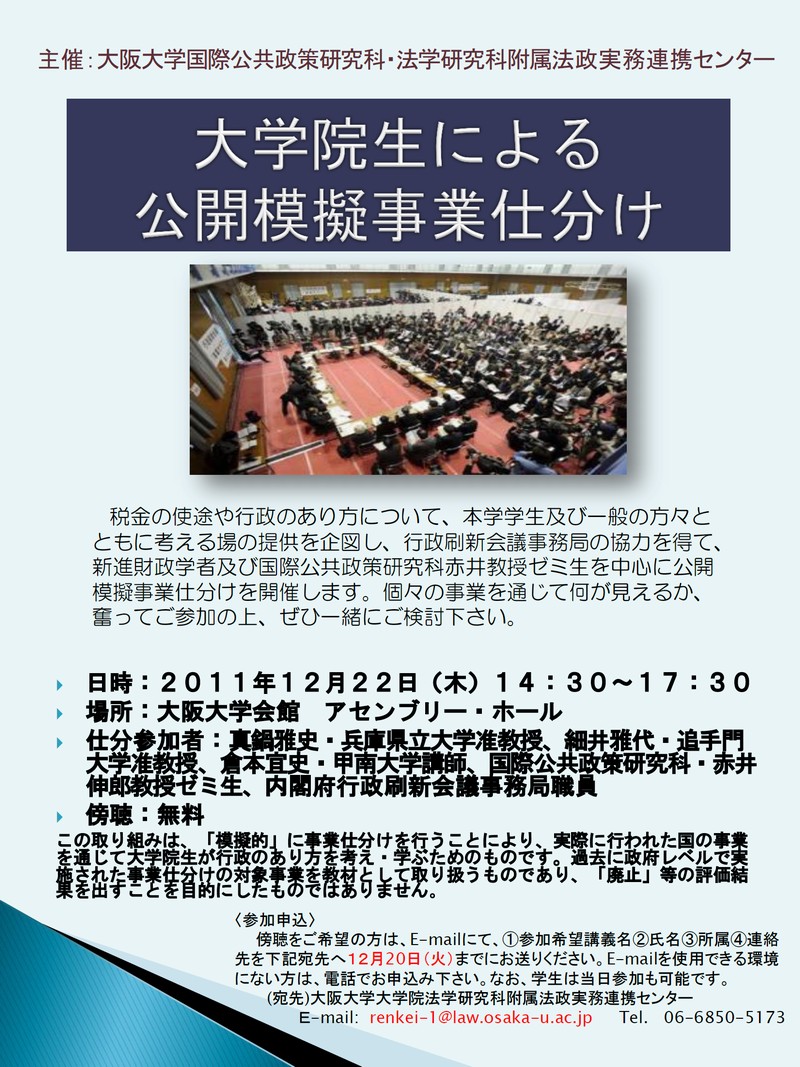 主催:国際公共政策研究科・法学研究科附属法政実務連携センター「大学院生による公開模擬事業仕分け」