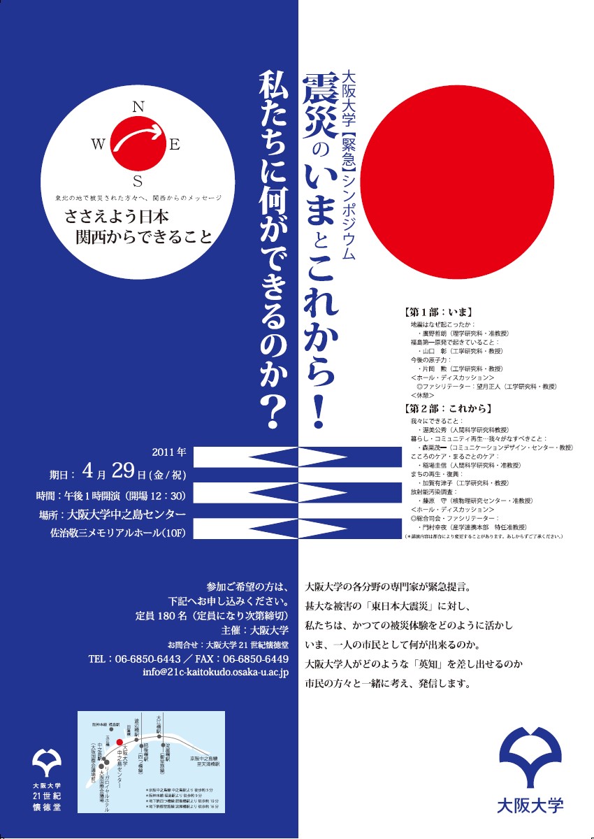 大阪大学【緊急】シンポジウム「震災の今とこれから」-私たちに何ができるのか-