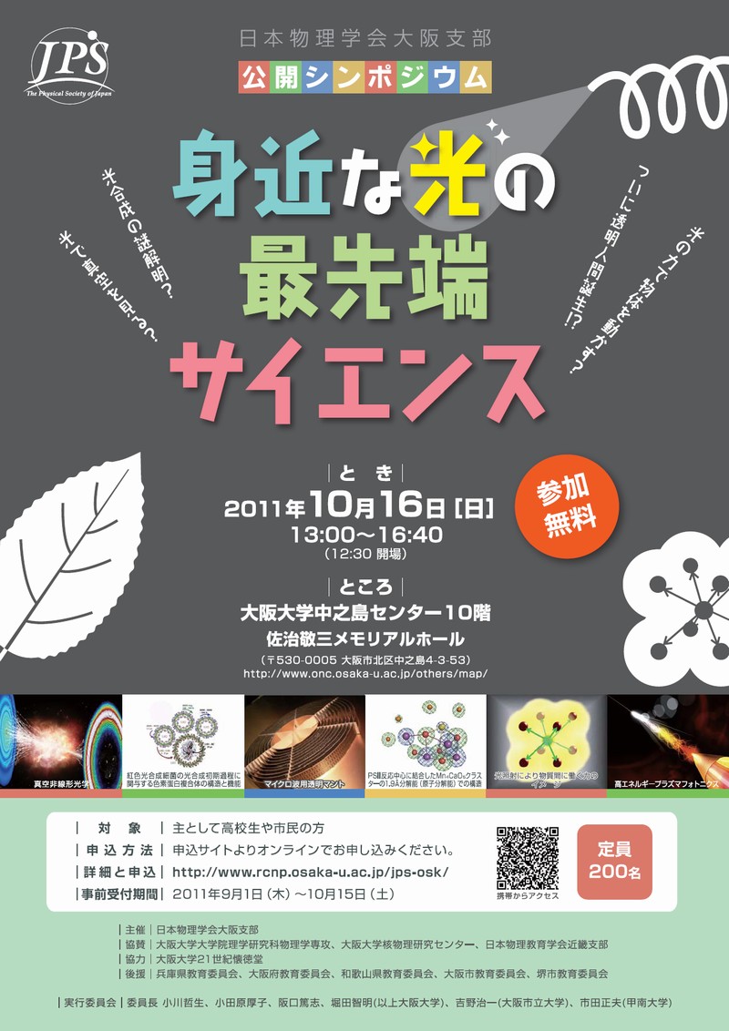 日本物理学会2011年度大阪支部シンポジウム担当 http://www.rcnp.osaka-u.ac.jp/jps-osk/ |