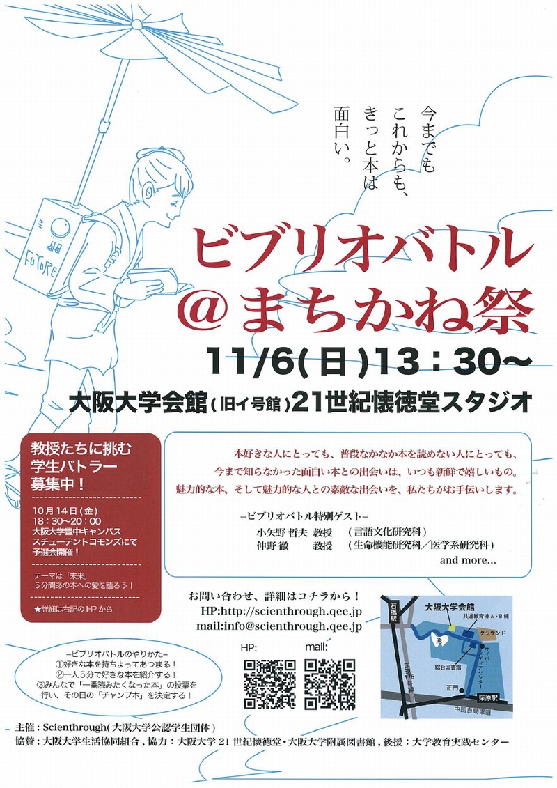 Scienthrough(大阪大学公認学生団体) http://scienthrough.qee.jp/2009/2011/09/machikanebiblio2011/ |