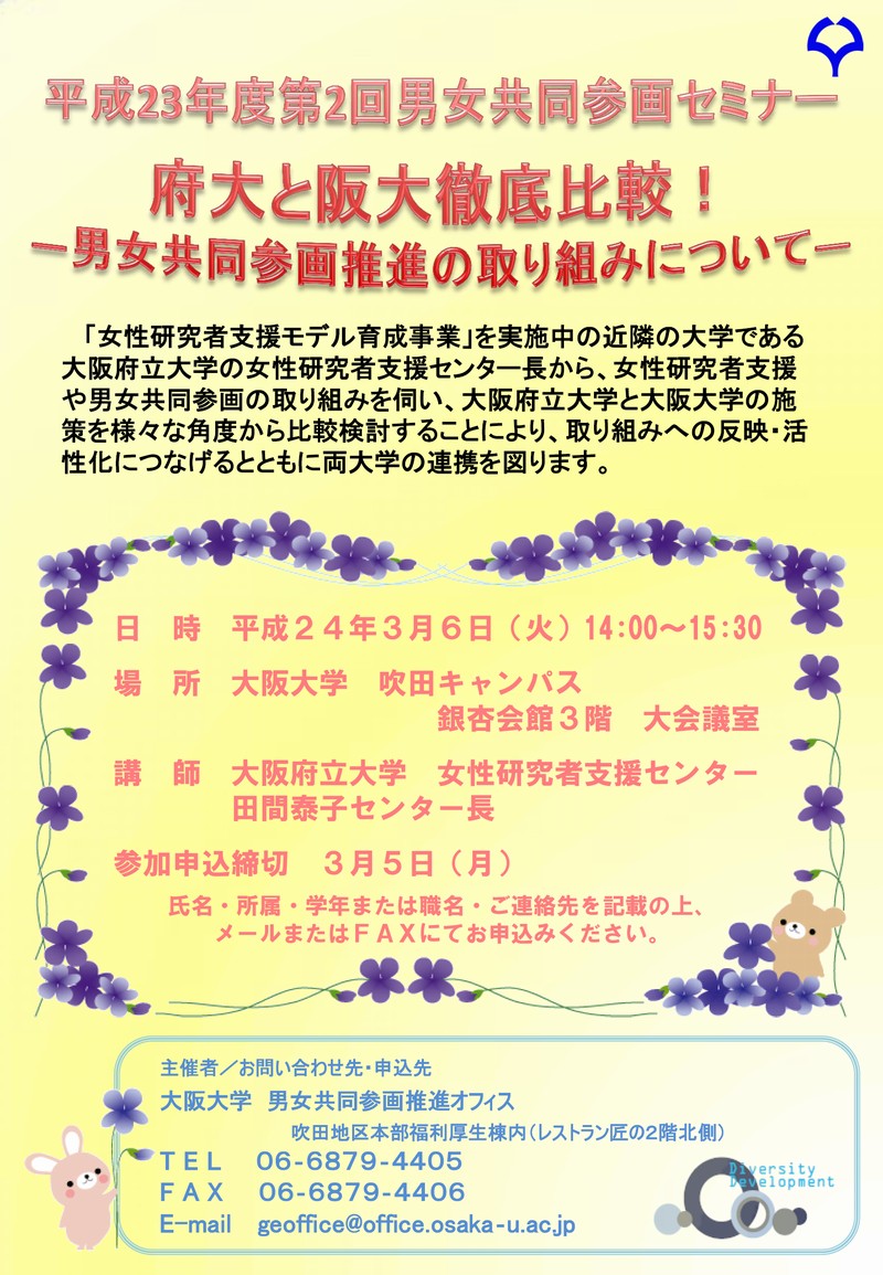 平成23年度第2回大阪大学男女共同参画セミナーを開催いたします。