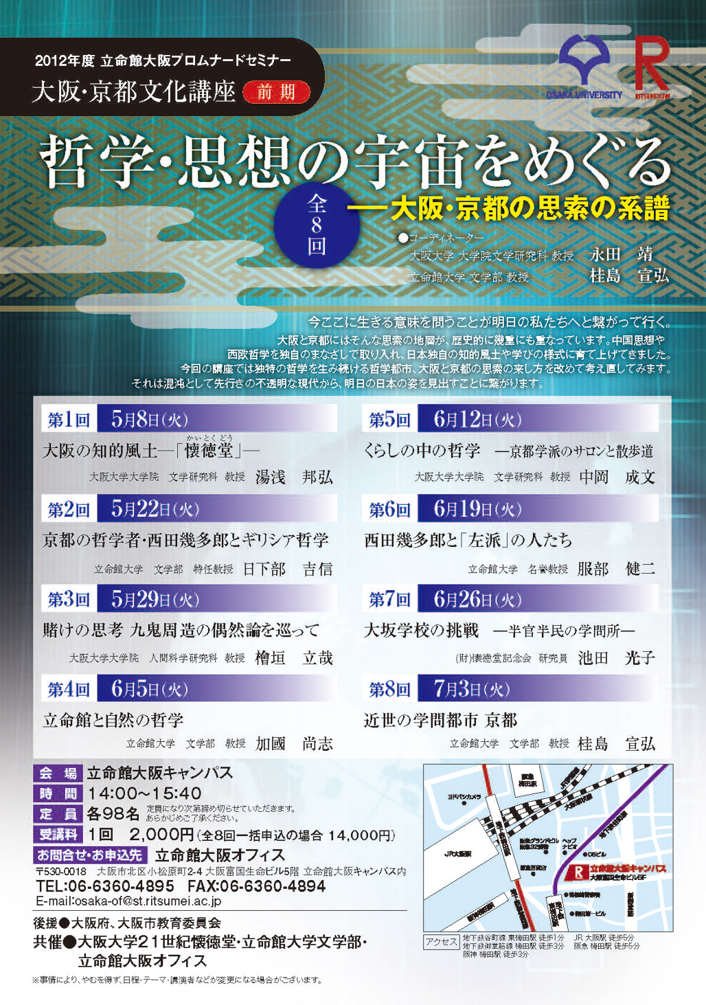 大阪・京都文化講座(2012年度前期)「哲学・思想の宇宙をめぐる-大阪・京都の思索の系譜」