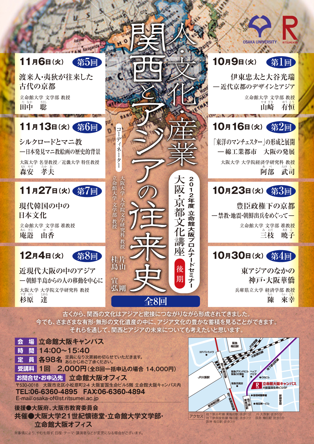 大阪・京都文化講座(2012年度後期)「人・文化・産業 関西とアジアの往来史」