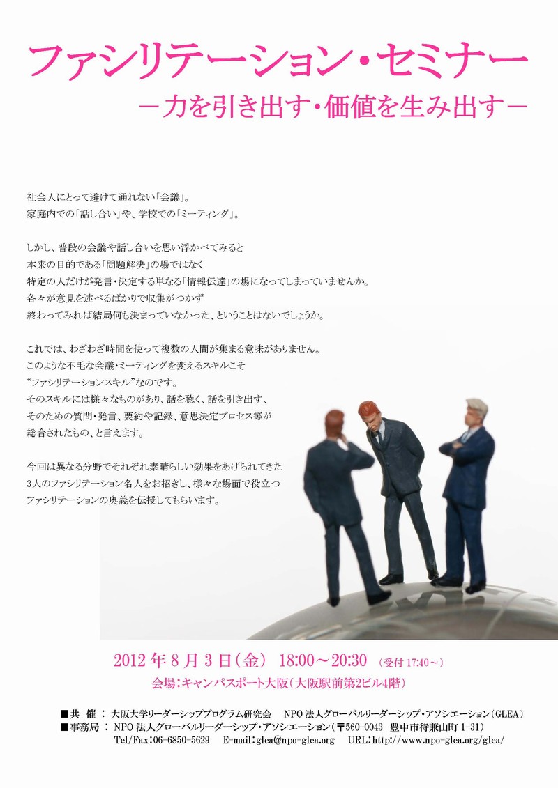 | 主催 | 大阪大学リーダーシップ教育研究会/NPO法人グローバルリーダーシップ・アソシエーション(共催) |