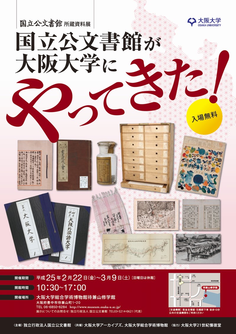 | 主催 | 主催:独立行政法人国立公文書館 共催:大阪大学アーカイブズ、大阪大学総合学術博物館 |