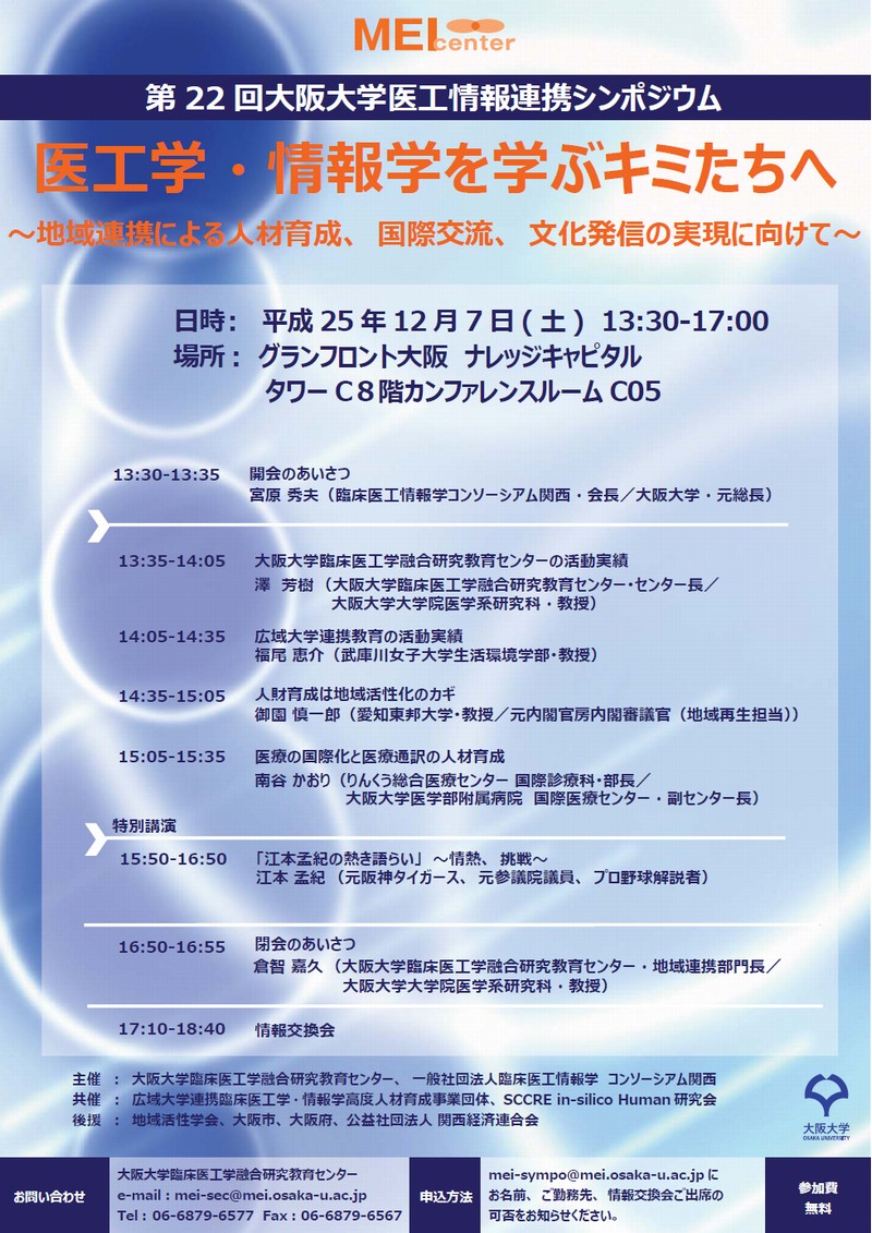 大阪大学臨床医工学融合研究教育センター http://mei.osaka-u.ac.jp/symposium_new |