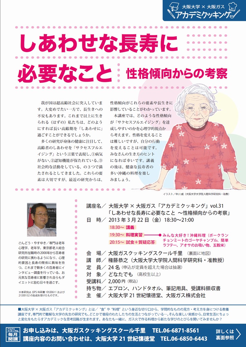 大阪大学×大阪ガス アカデミクッキングvol.31「しあわせな長寿に必要なこと 性格傾向からの考察」