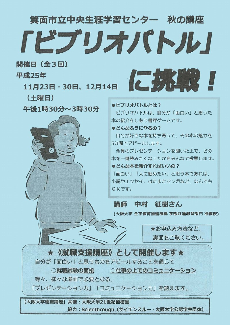 「ビブリオバトル」に挑戦!箕面市中央学習センター秋の講座【大阪大学連携講座】