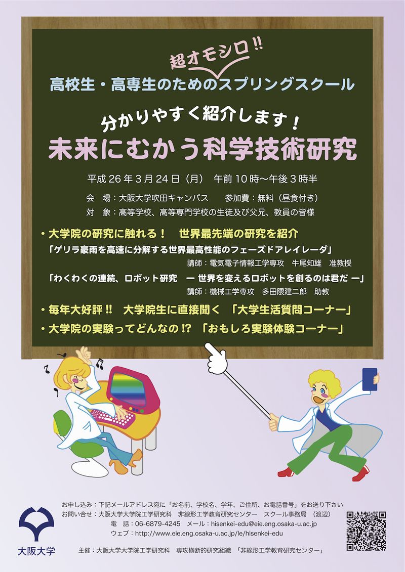 非線形工学教育研究センター スクール事務局 http://www.eie.eng.osaka-u.ac.jp/le/hisenkei-edu/schools/2014spring/ |