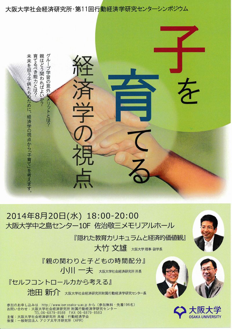 大阪大学社会経済研究所第11回行動経済学研究センターシンポジウム 『子を育てる -経済学の視点-』