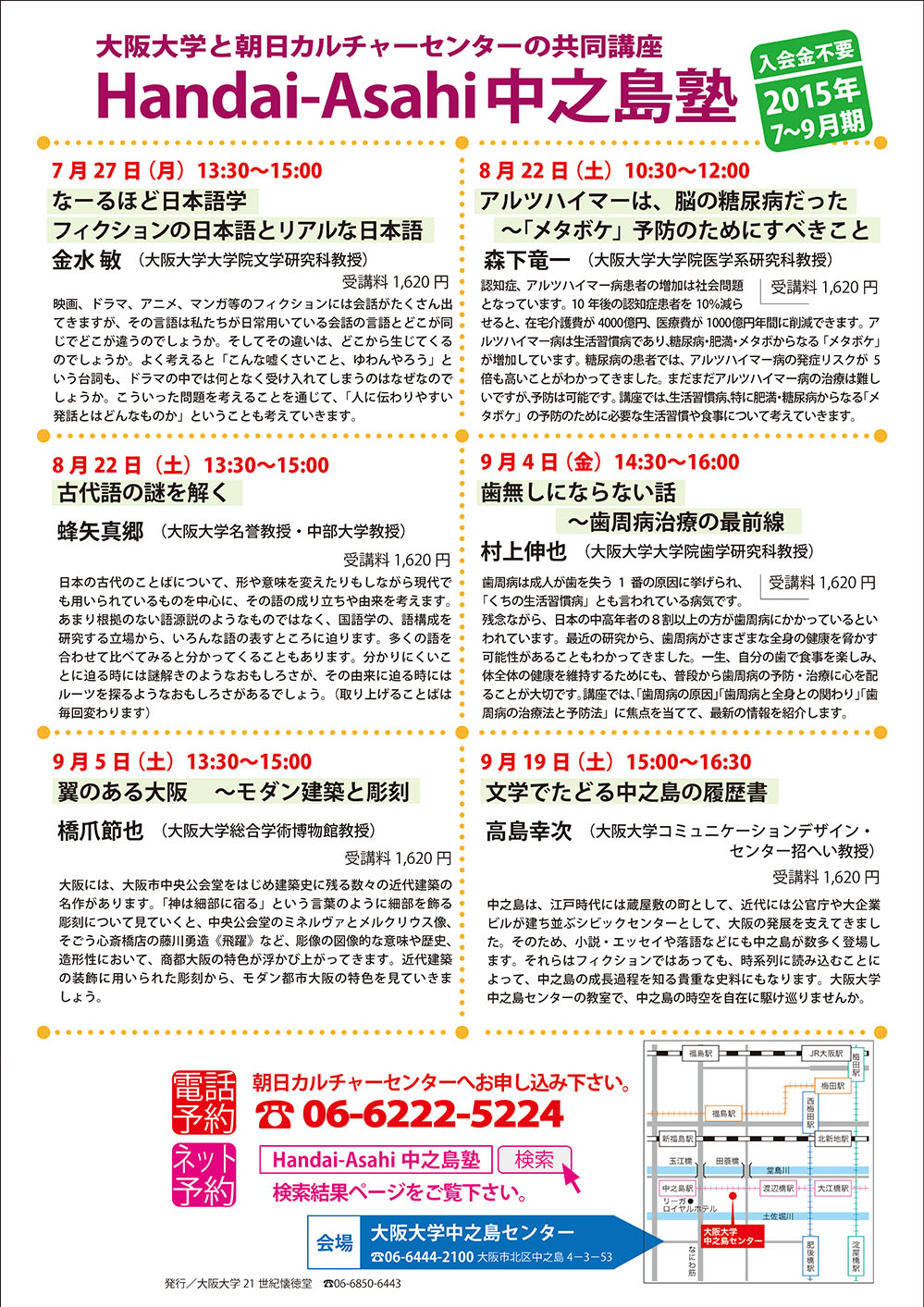 | 主催 | 大阪大学21世紀懐徳堂、朝日カルチャーセンター |
