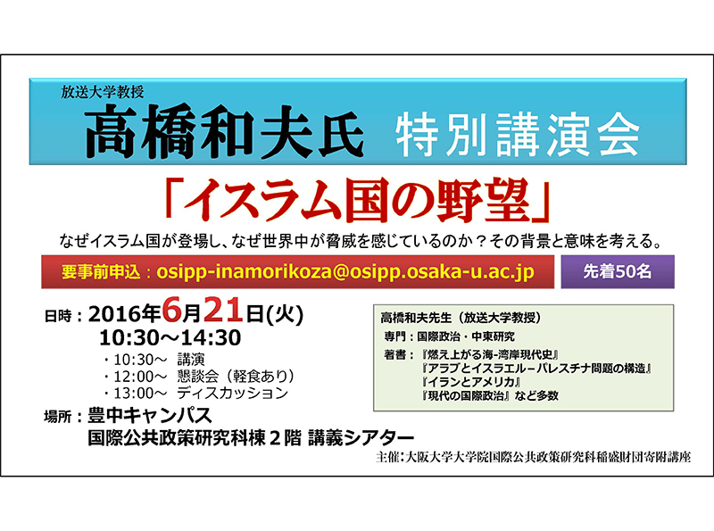 | 主催 | 大阪大学国際公共政策研究科稲盛財団寄附講座 |