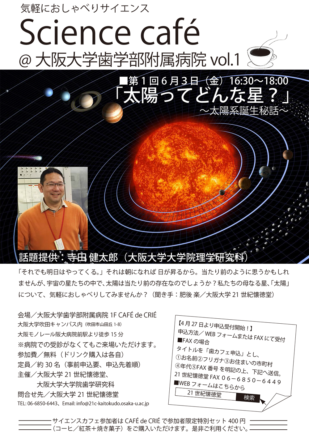 Science café@大阪大学歯学部附属病院vol.1 「太陽ってどんな星?〜太陽系誕生秘話〜」