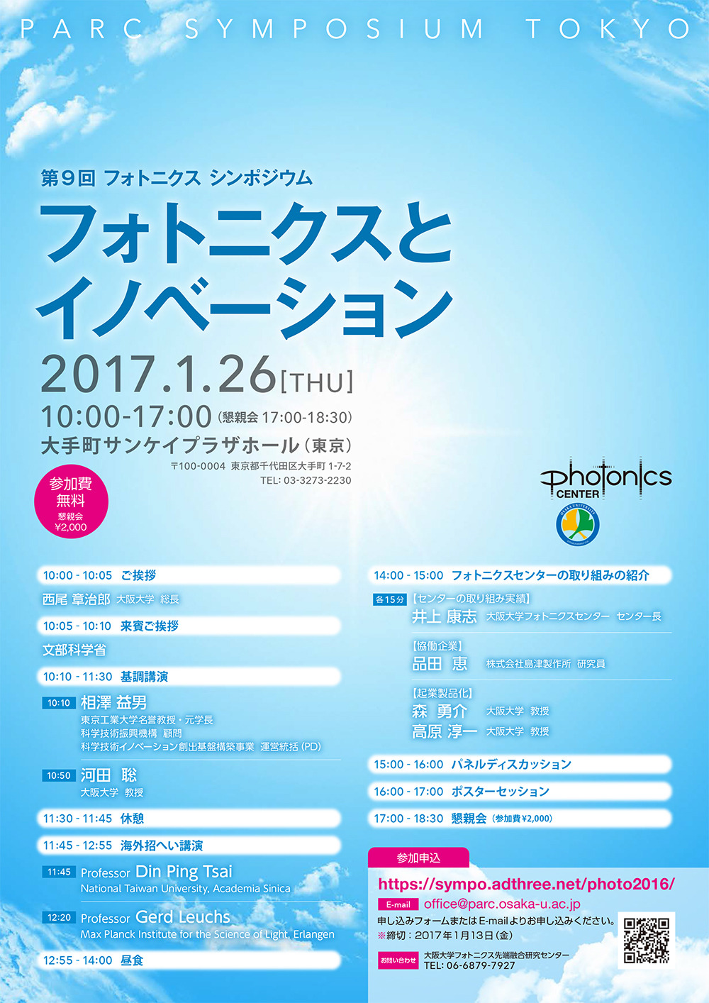 大阪大学フォトニクス先端融合研究センター https://sympo.adthree.net/photo2016/ |
