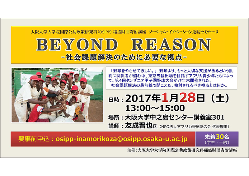国際公共政策研究科(OSIPP)稲盛財団寄附講座 ソーシャル・イノベーション連続セミナー3 「BEYOND REASON-社会課題解決のために必要な視点-」