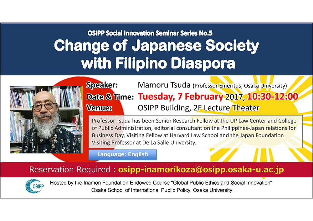 国際公共政策研究科(OSIPP)稲盛財団寄附講座 ソーシャル・イノベーション連続セミナー5 ”Change of Japanese society with Filipino diaspora”