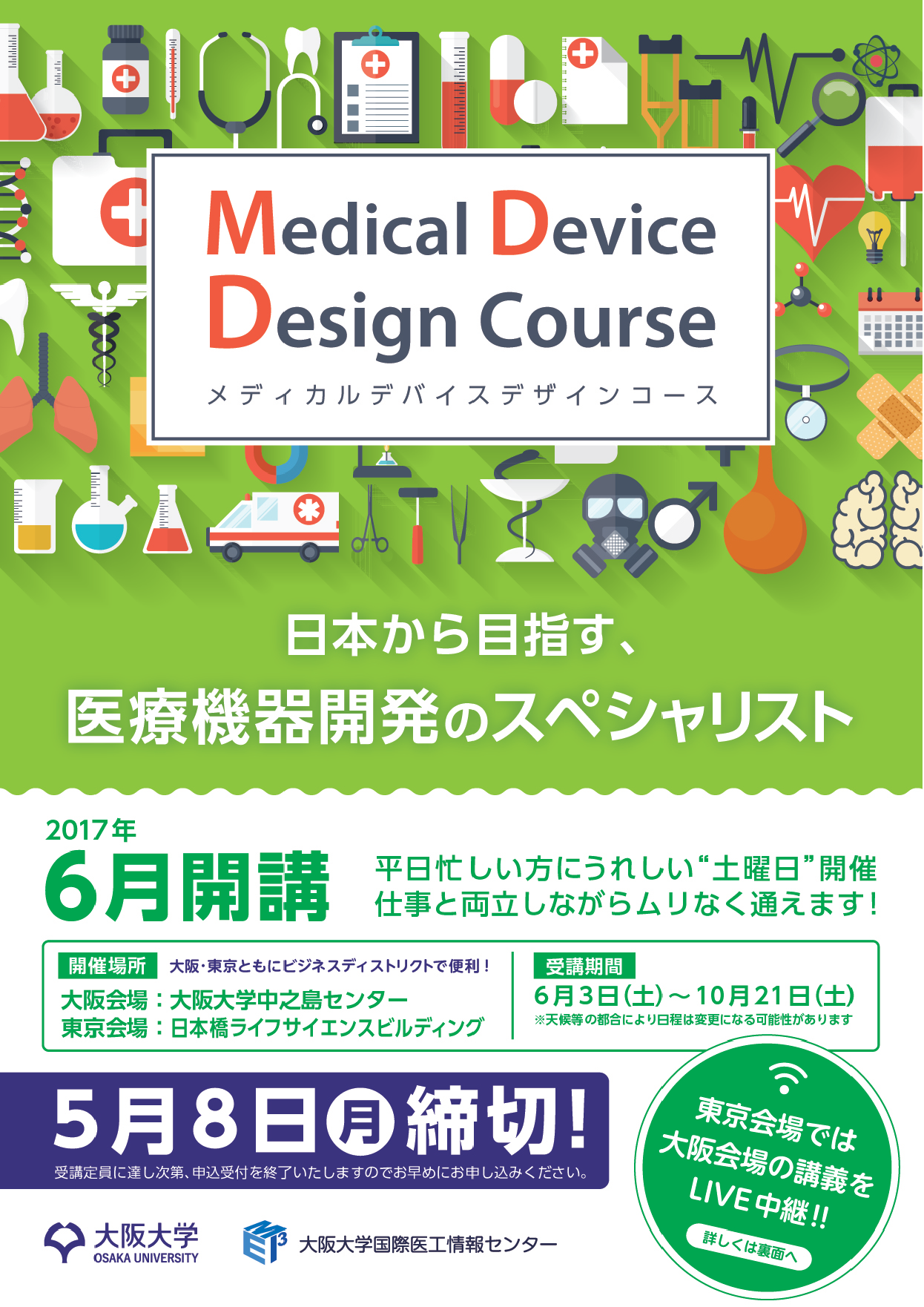 大阪大学MEIセンターでは、昨年より医療機器開発のスペシャリストを養成する社会人向けコース『メディカルデバイスデザインコース(MDDコース)』を提供しています。