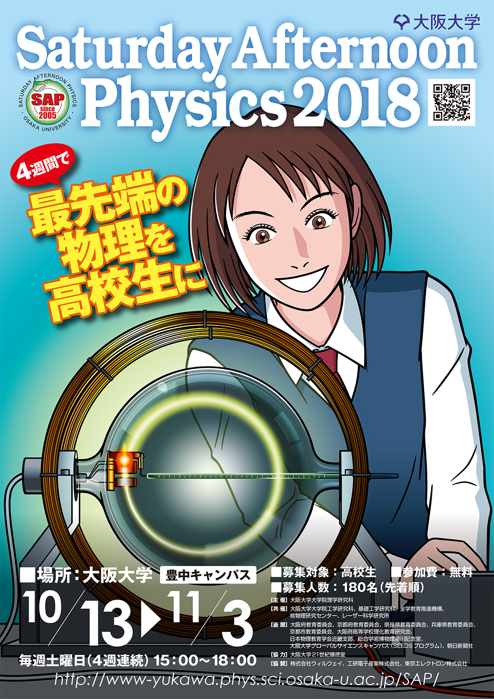 後援等 大阪府教育委員会、奈良県教育委員会、兵庫県教育委員会、京都府教育委員会、京都市教育委員会、日本物理教育学会近畿支部、大阪府高等学校理化教育研究会、朝日新聞社、大阪大学グローバルサイエンスキャンパス(SEEDSプログラム)、大阪大学総合学術博物館湯川記念室