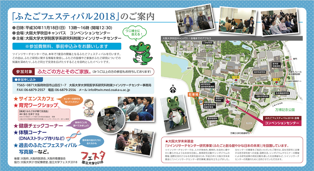 | 後援等 | 大阪府、大阪府医師会、大阪府看護協会、国立大学フェスタ2018、大阪大学21世紀懐徳堂 |