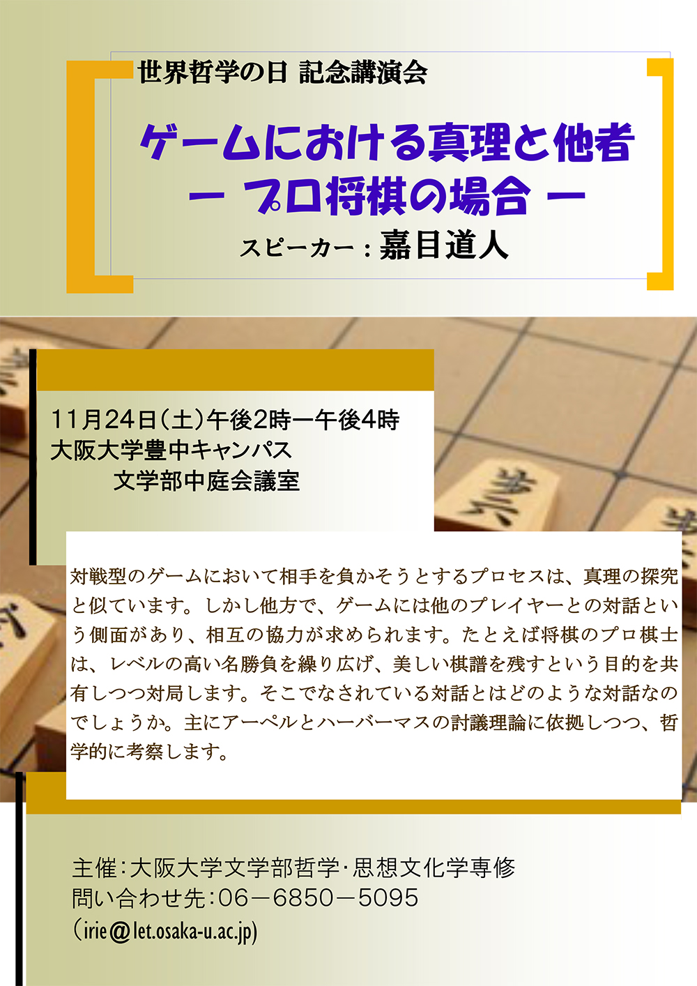 世界哲学の日記念講演会「ゲームにおける真理と他者―プロ将棋の場合―」