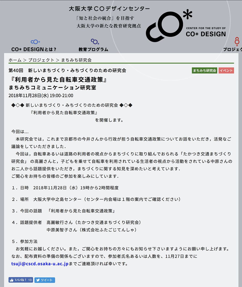 大阪大学COデザインセンター まちみちコミュニケーション研究室 辻 寛 http://www.cscd.osaka-u.ac.jp/co/2018/000508.php |