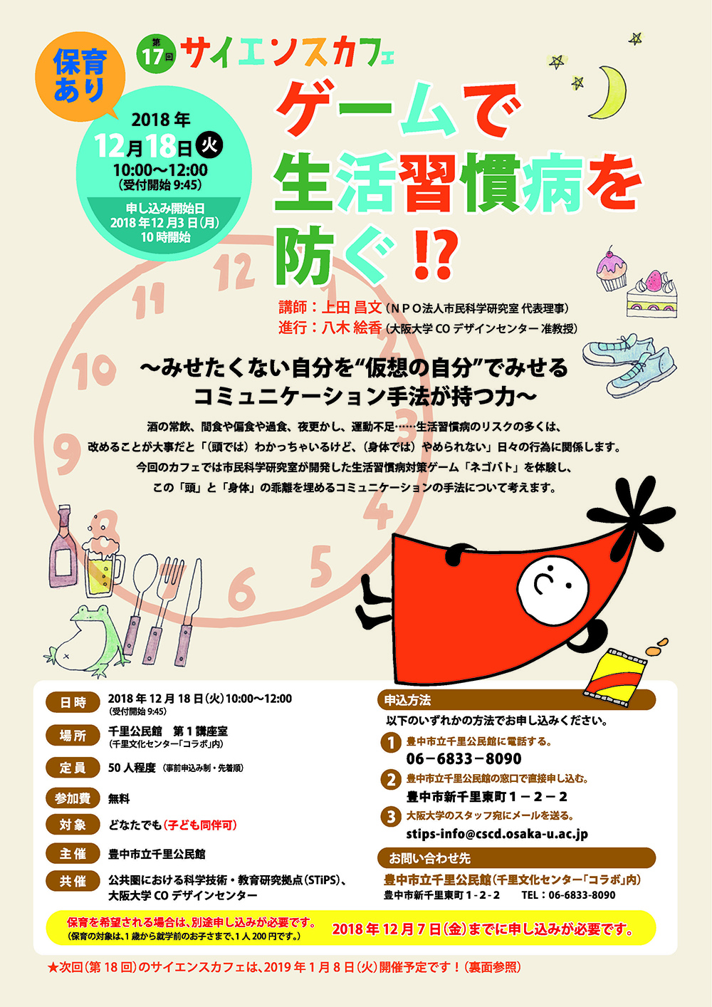 サイエンスカフェ@千里公民館 ゲームで生活習慣病を防ぐ!? 〜みせたくない自分を "仮想の自分" でみせるコミュニケーション手法が持つ力〜