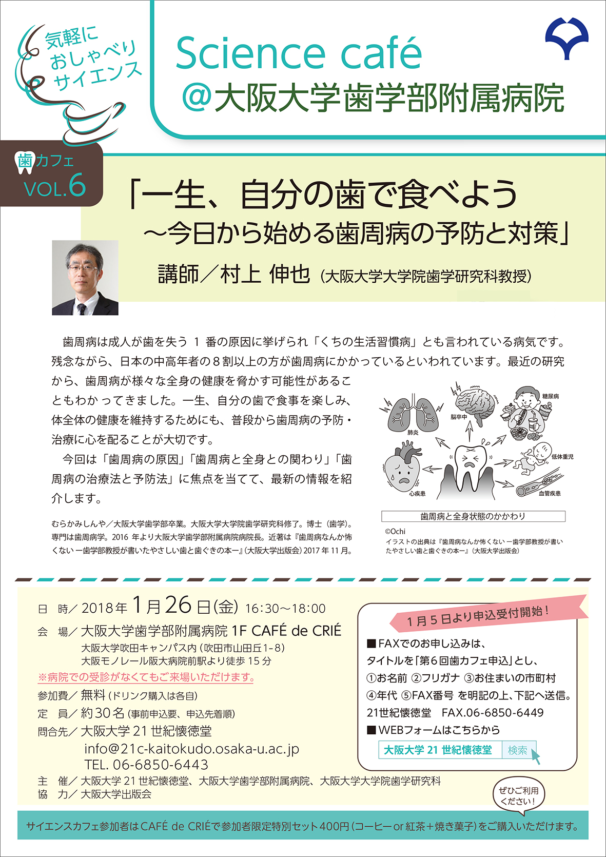 Science café@大阪大学歯学部附属病院vol.6 「一生、自分の歯で食べよう 〜今日から始める歯周病の予防と対策」