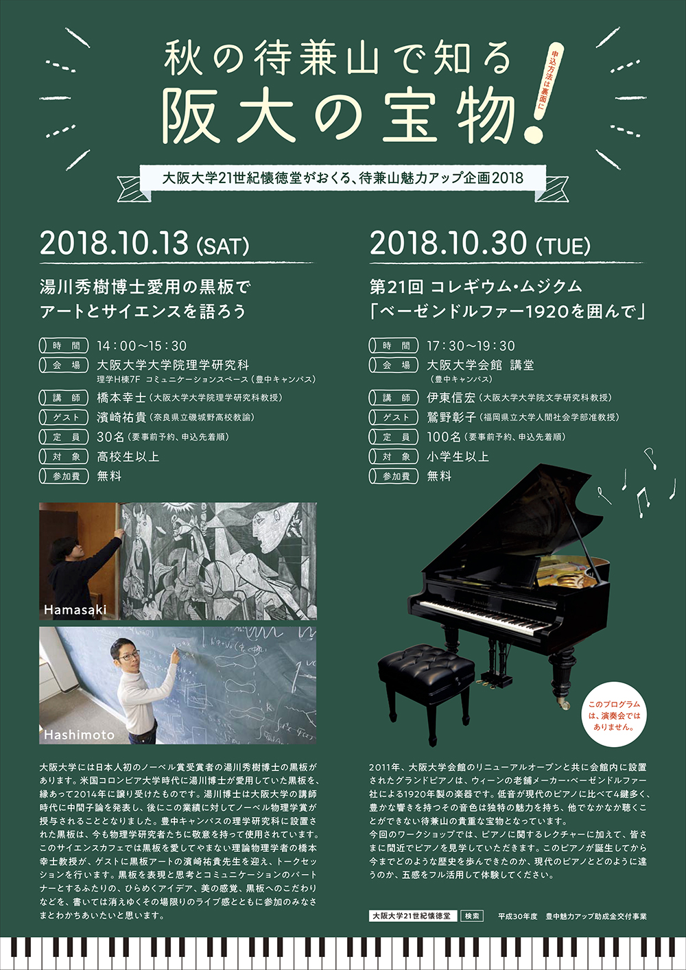 主催 大阪大学共創機構社学共創本部21世紀懐徳堂、大阪大学大学院文学研究科音楽学研究室