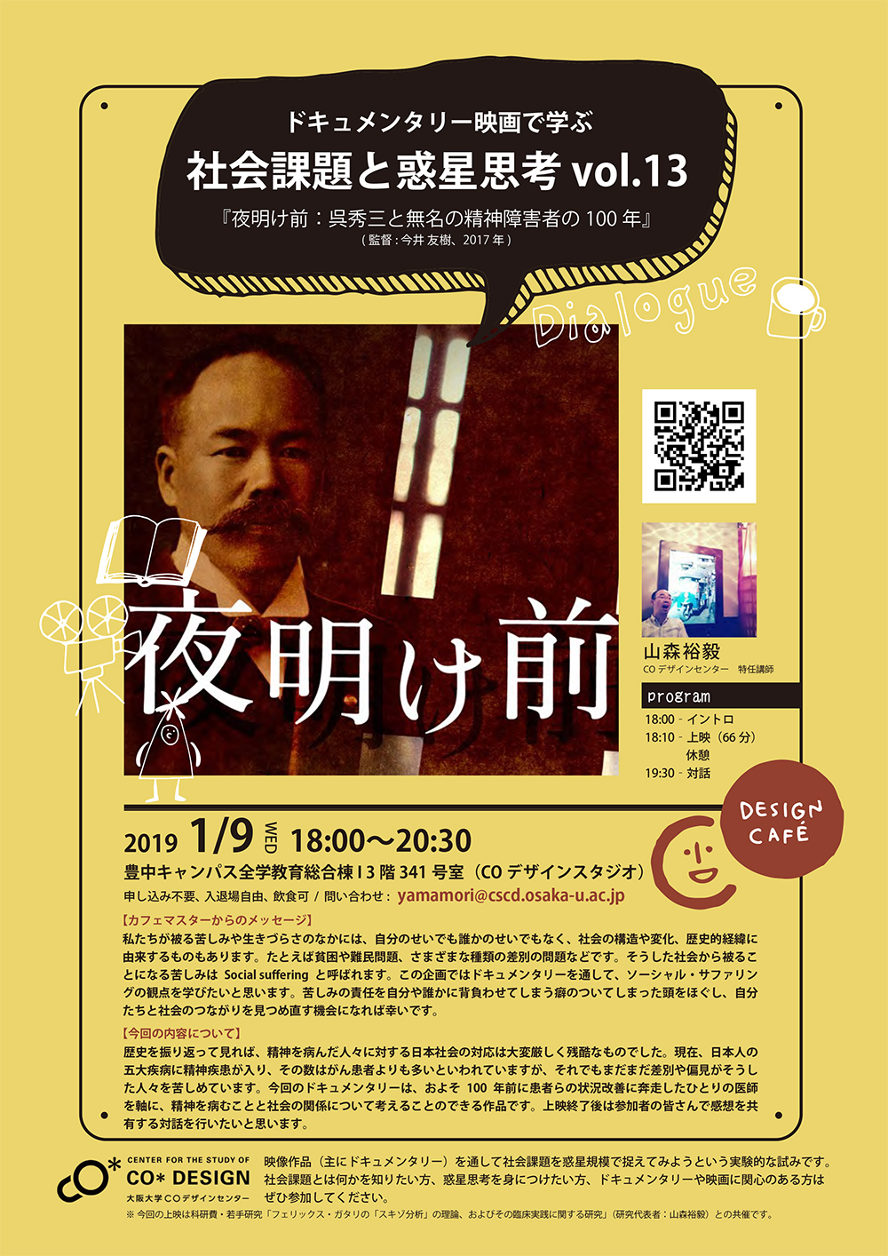 COデザインカフェ ドキュメンタリー映画で学ぶ社会課題と惑星思考 vol.13 『夜明け前:呉秀三と無名の精神障害者の100年』