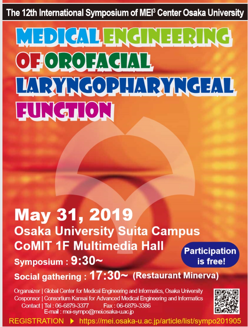The 12th MEI Center International Symposium 「Medical Engineering of Orofacial Laryngopharyngeal Function」邦題:「口腔咽喉頭顔面機能の医工学」