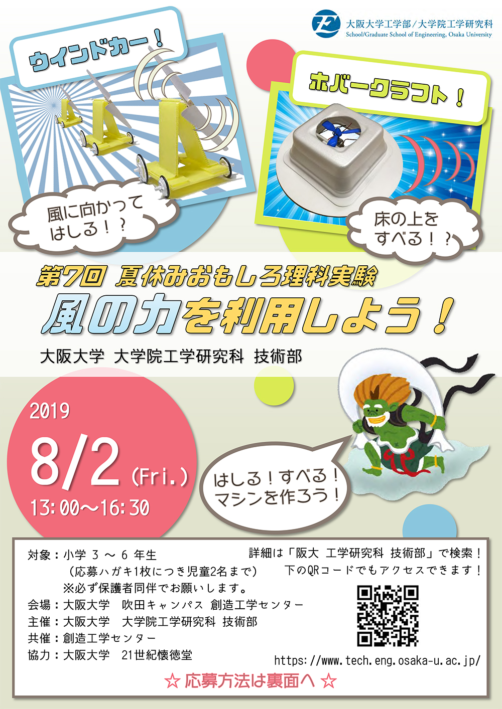 夏休みおもしろ理科実験 大阪大学大学院工学研究科技術部 社会貢献プログラム「風の力を利用しよう!」