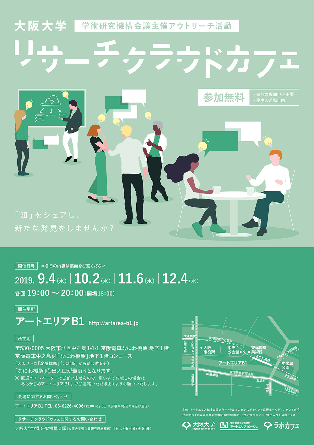 | 主催 | 大阪大学学術研究機構会議、アートエリアB1【大阪大学+NPO法人ダンスボックス+京阪ホールディングス(株)】 |