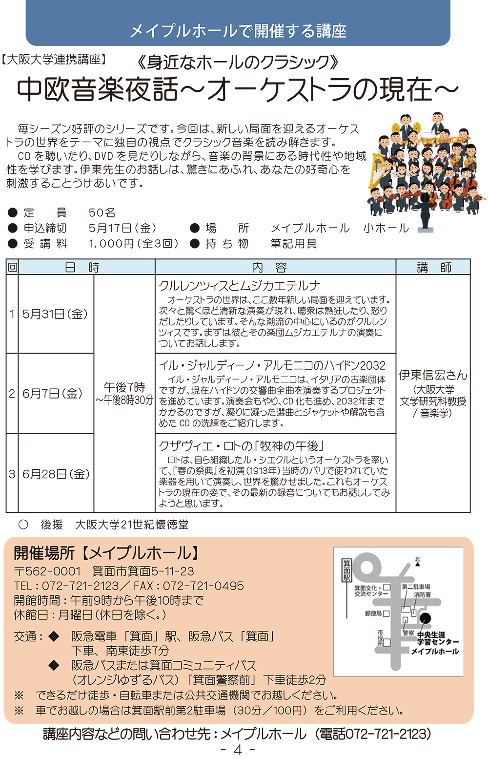 講座内容などの問い合わせ先:メイプルホール 072-721-2123