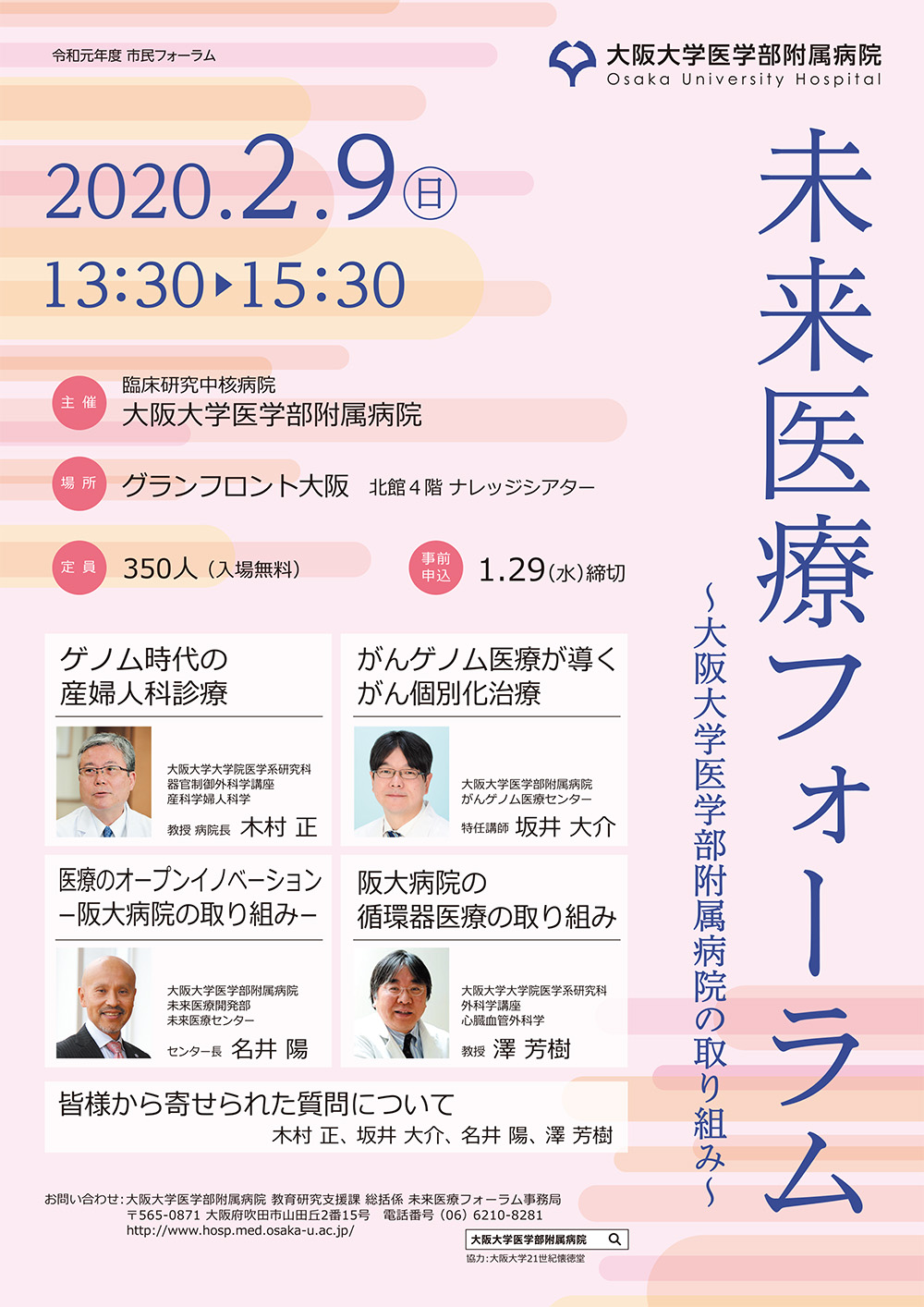 大阪大学医学部附属病院 教育研究支援課 総括係「未来医療フォーラム事務局」