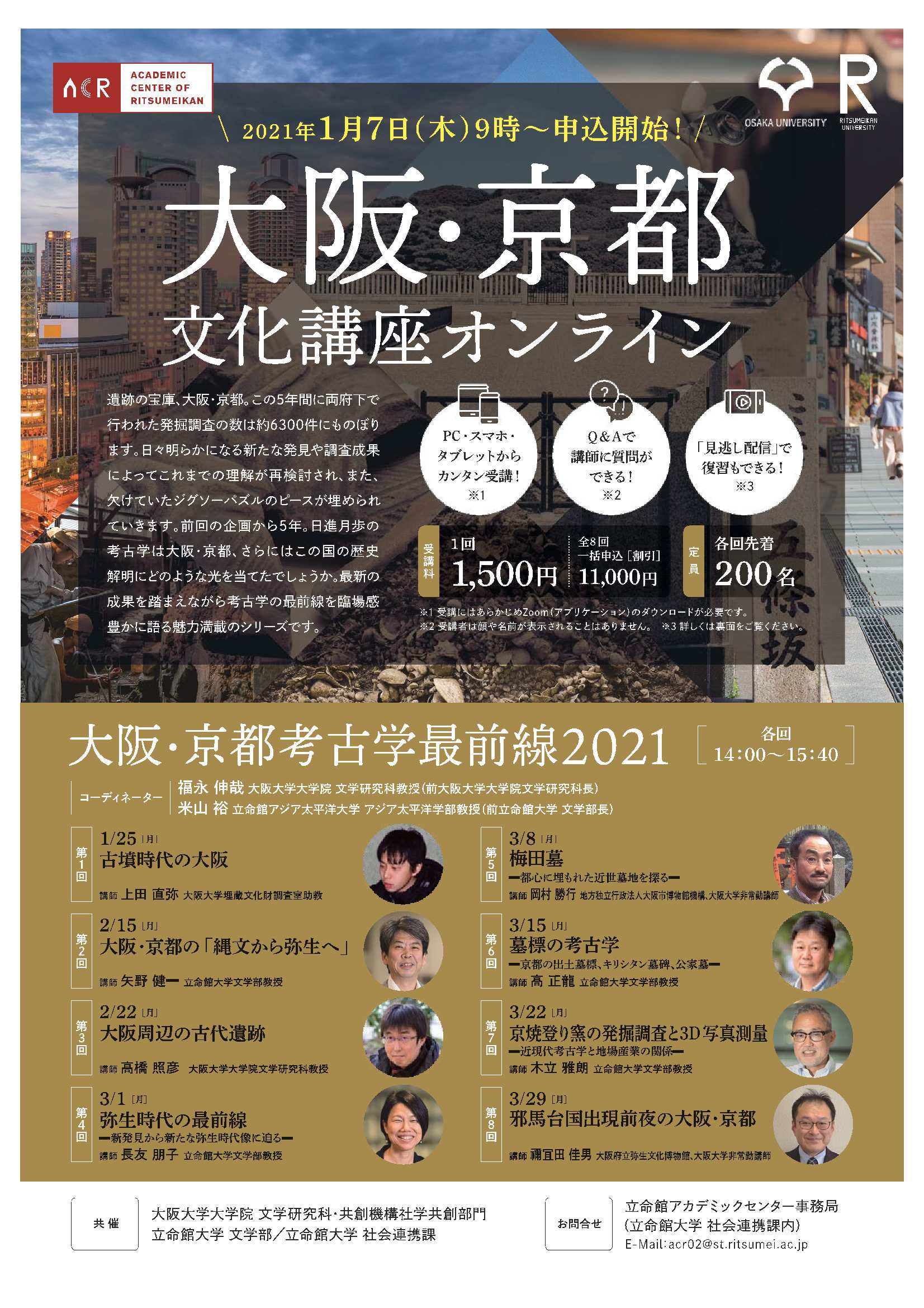 【オンライン開催】大阪・京都文化講座 「大阪・京都考古学最前線2021 」