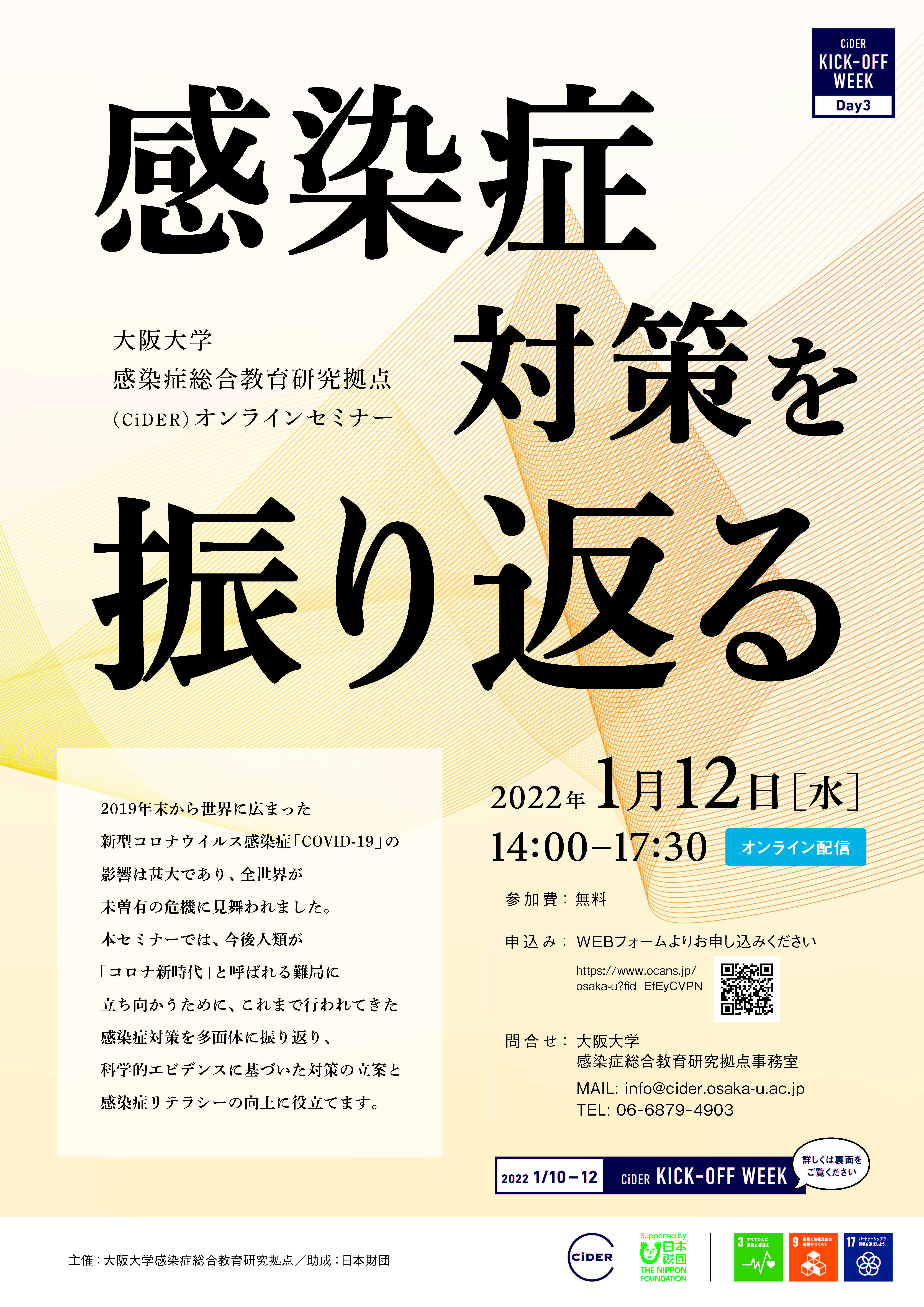 【CiDER Kick-off Week】大阪大学感染症総合教育研究拠点(CiDER)オンラインセミナー「感染症対策を振り返る」