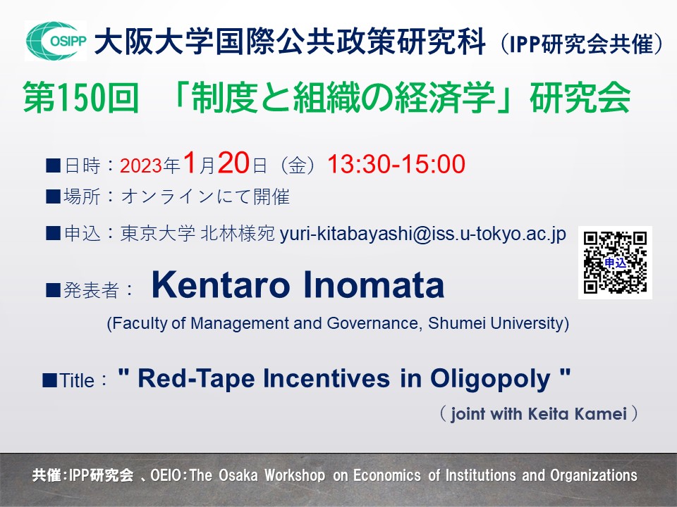 第150回「制度と組織の経済学」研究会 (共催:IPP研究会) 開催のお知らせ