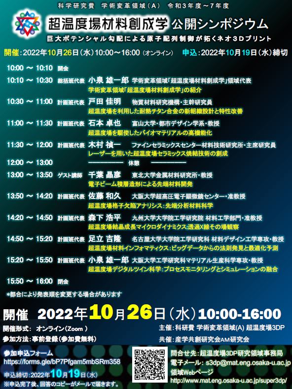 【公開シンポジウム】学術変革領域 超温度場3DP 公開シンポジウム(10/26(水)開催)