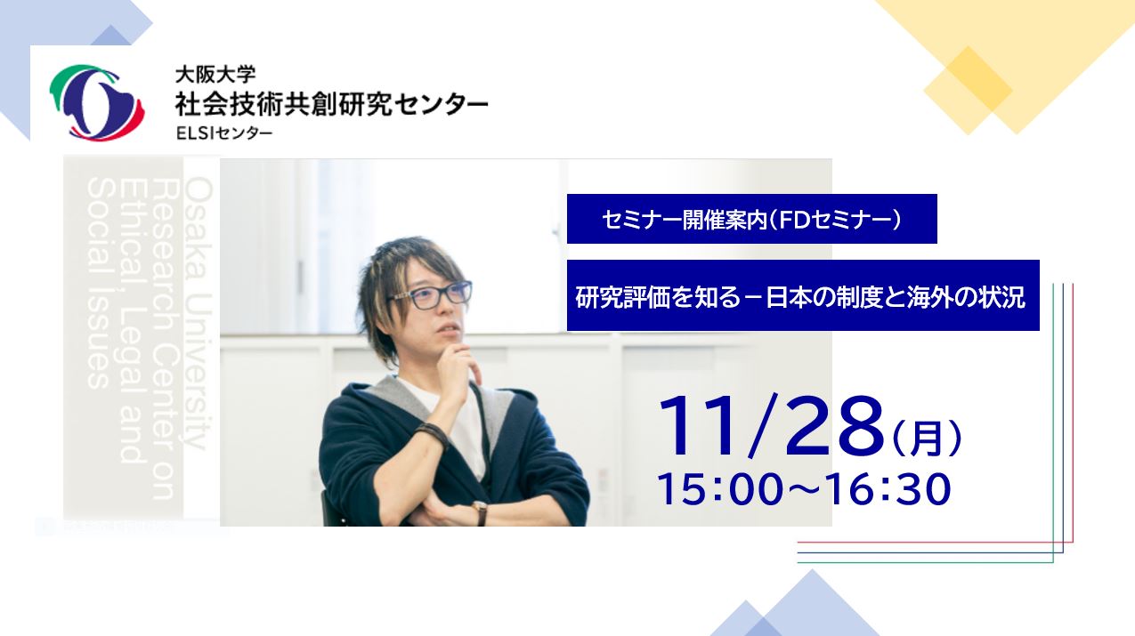 【開催案内】FD研修 研究評価を知る-日本の制度と海外の状況(ELSIセンター)