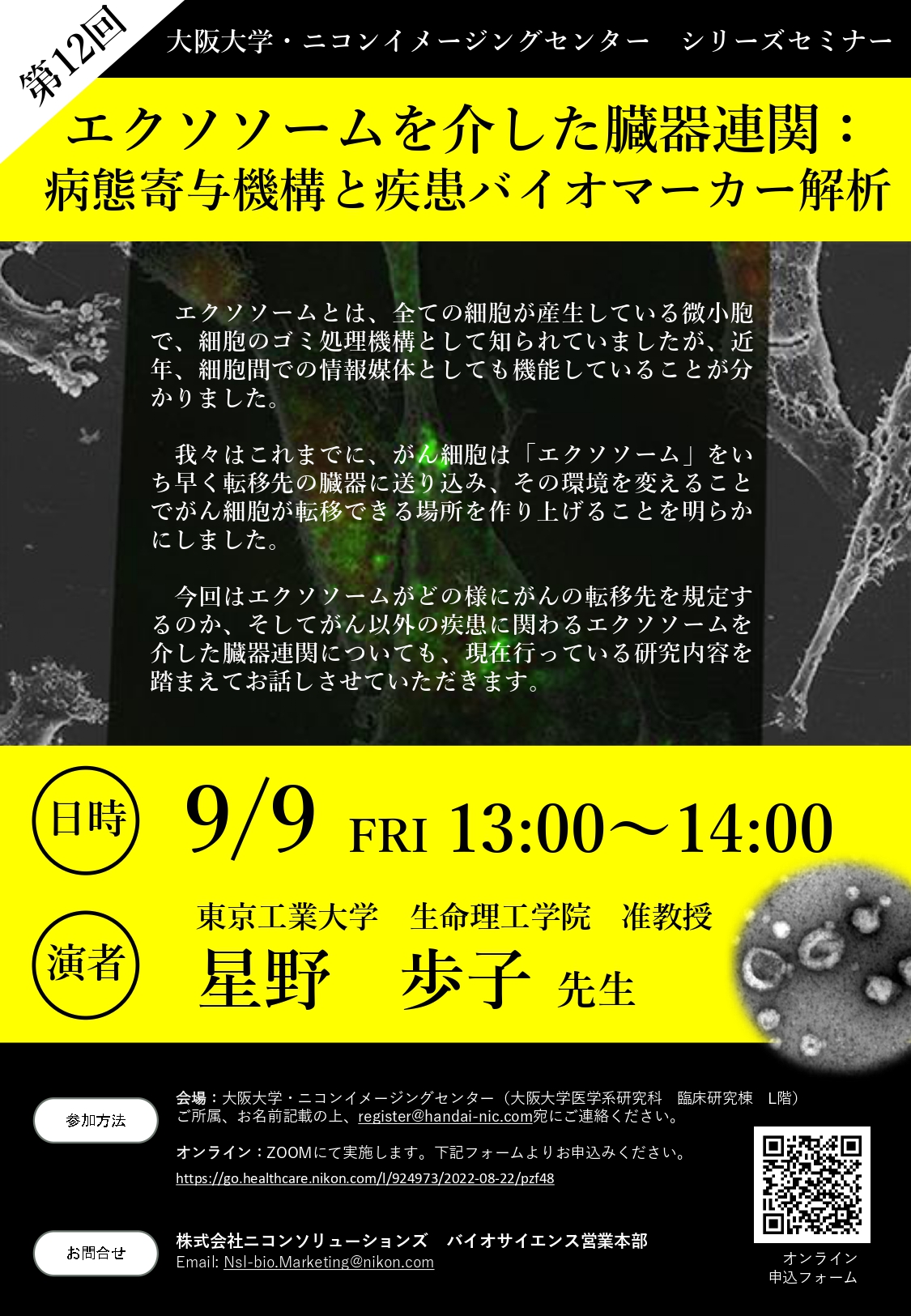 大阪大学・ニコンイメージングセンター シリーズセミナー  第12回「エクソソームを介した臓器連関:病態寄与機構と疾患バイオマーカー解析」